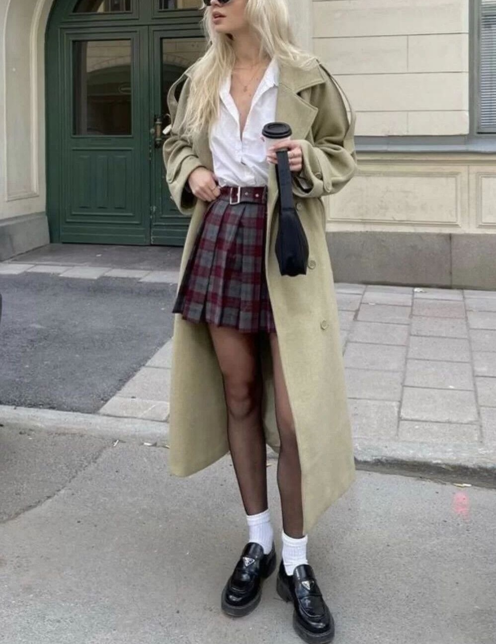 O ținută de școlăriță clasică, cu dresuri, sosete albe și o fustă plisată, emană o aură de eleganță și feminitate. Dresurile, cu textura lor fină și culori variate, adaugă un finisaj sofisticat și protecție împotriva vremii reci, permițând astfel să porți fusta plisată preferată în orice sezon. Sosetele albe, purtate sub dresuri sau la vedere, adaugă un contrast plăcut și un aspect impecabil.
