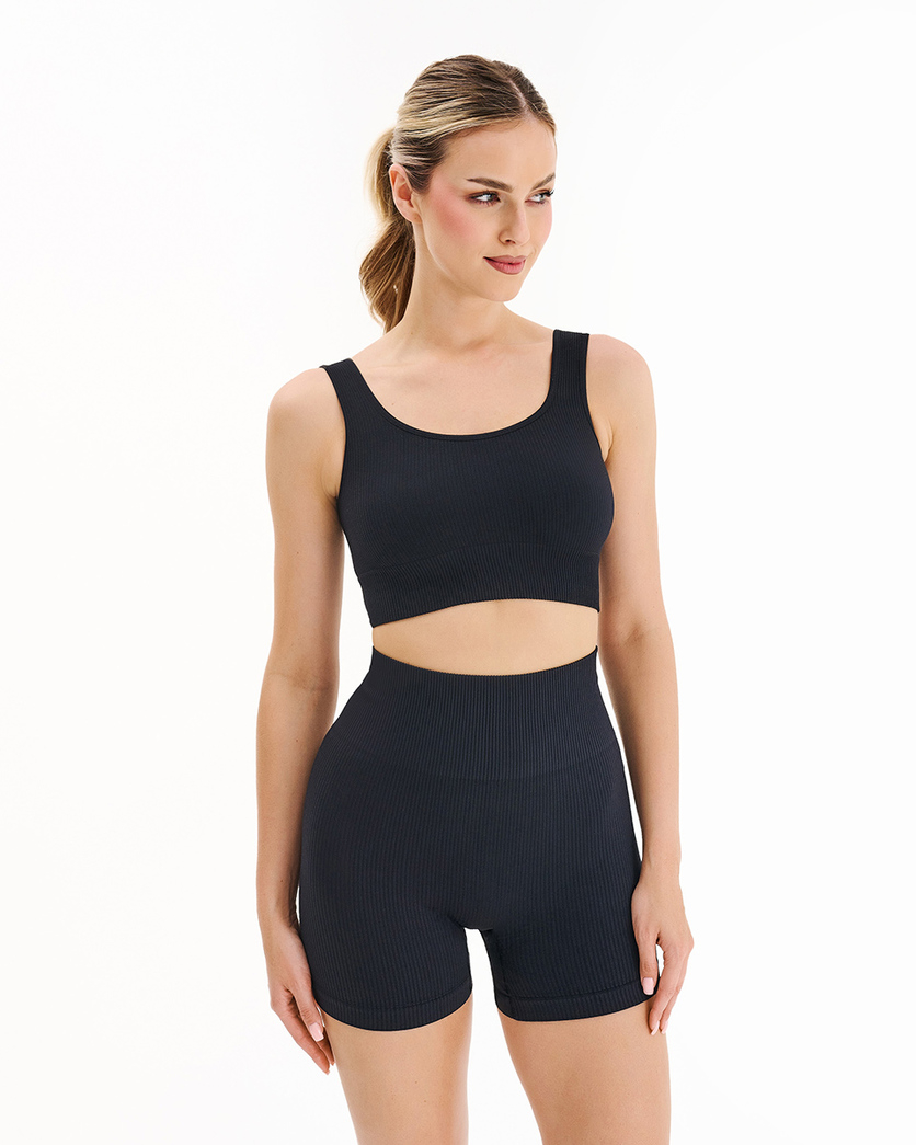Un top sport scurt, cu bretele late, confecționat din tricot cu nervuri, este alegerea perfectă pentru femeile care apreciază confortul și stilul în activitățile lor zilnice. Materialul elastic, cu detalii subtile în nervuri, cade frumos, adaptându-se corpului și asigurând confortul chiar și în timpul antrenamentelor intense. Datorită tehnologiei fără cusături, topul scurt nu strânge, nu irită și este invizibil sub haine, creând un efect de a doua piele. Acesta este un exemplu perfect al modului în care lenjeria intimă fără cusături pentru femei poate combina funcționalitatea cu un aspect la modă.