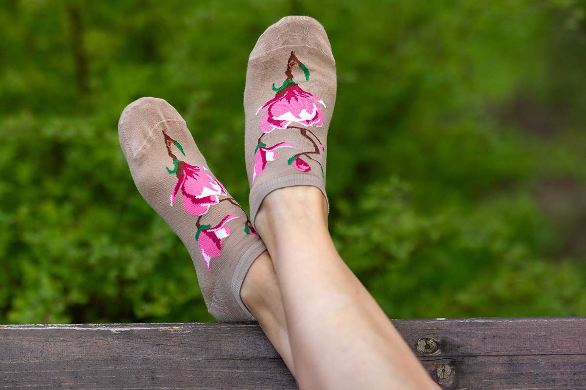 Aceste șosete din bambus cu imprimeu floral elegant aduc un aer fresh și rafinat oricărei ținute. Cu un design inspirat din flori delicate în nuanțe de roz pe fundal cald, sunt perfecte pentru zile relaxate, plimbări sau chiar un picnic stylish.Realizate din 82% bambus, 17% poliamidă reciclată și 1% elastan, oferă un echilibru ideal între confort, durabilitate și flexibilitate. Materialul din bambus este extrem de moale, respirabil și antibacterian, ajutând la menținerea prospețimii chiar și în zilele lungi.