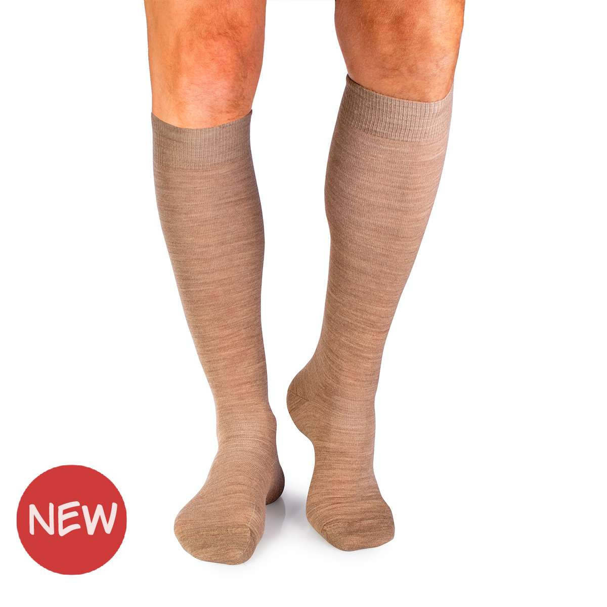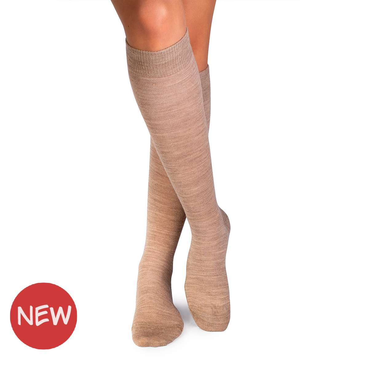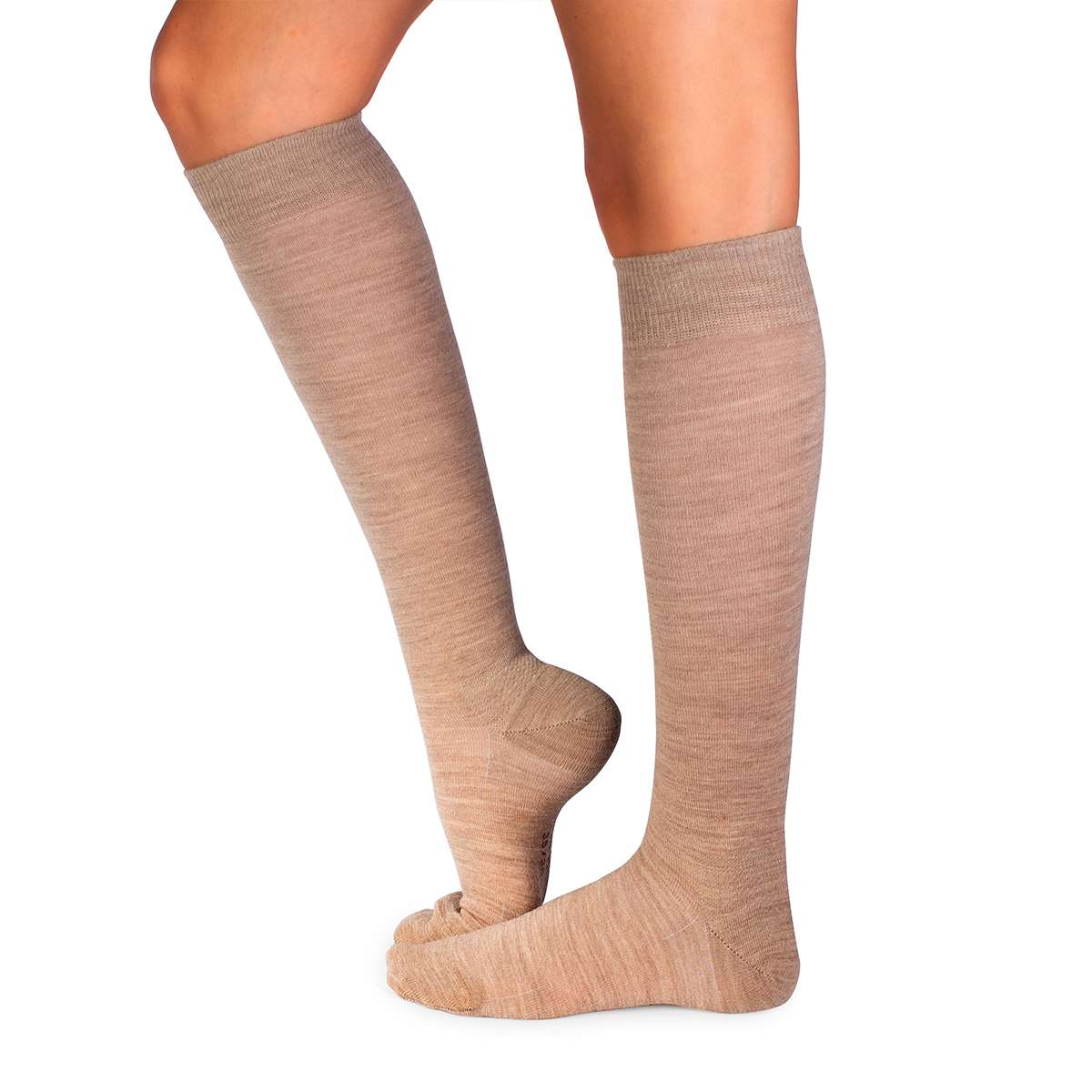 Șosete pana la genunchi care oferă combinația perfectă de moliciune și căldură. Interiorul șosetei este tricotat din bumbac pieptănat, astfel încât să se simtă delicat și moale pe piele. În timp ce exteriorul șosetei este tricotat dintr-o lână fină de merinos, astfel încât să vă poată încălzi în zilele reci. Pentru un plus de rezistență, am întărit zonele care se uzează cel mai mult în timpul mersului. Aceste șosete sunt bogate în materiale naturale și sunt potrivite atât pentru o ținută formală, cât și pentru blugi.