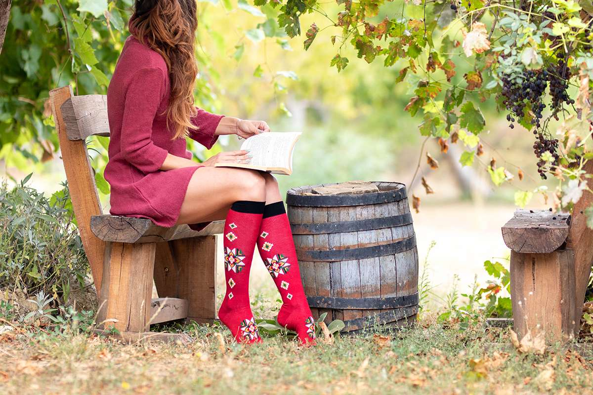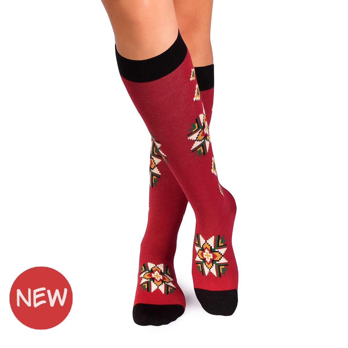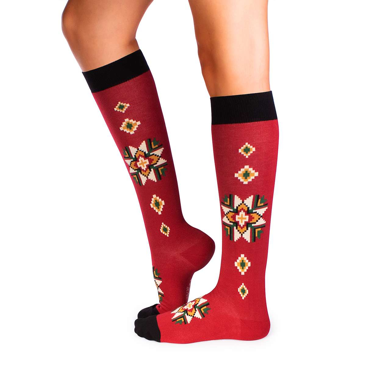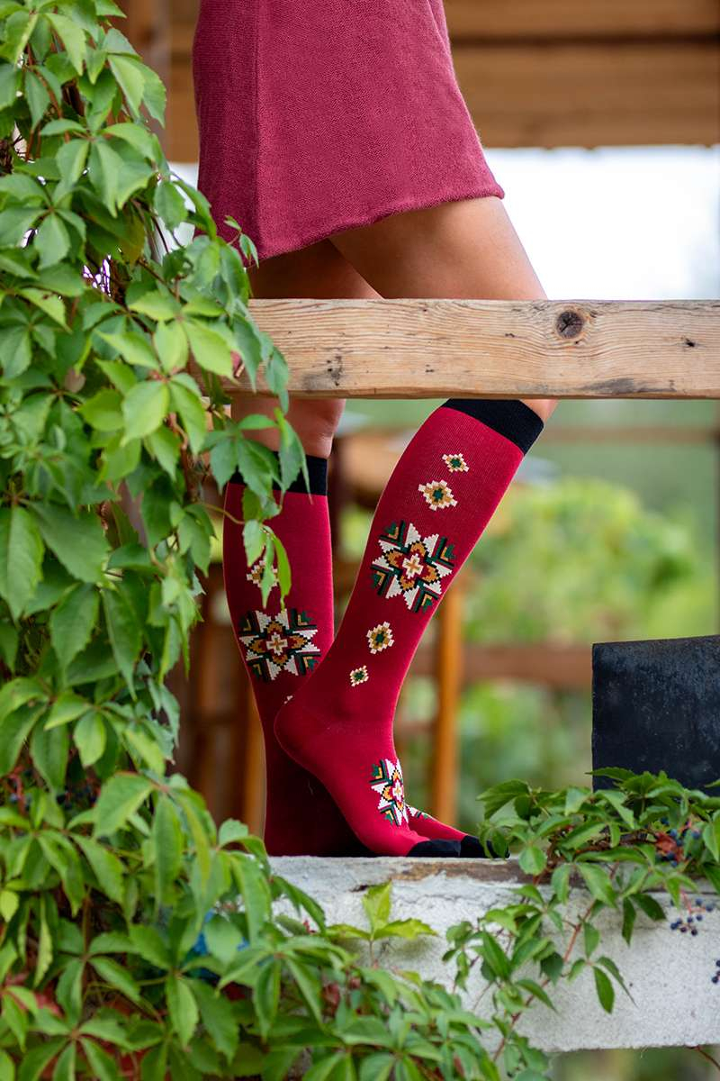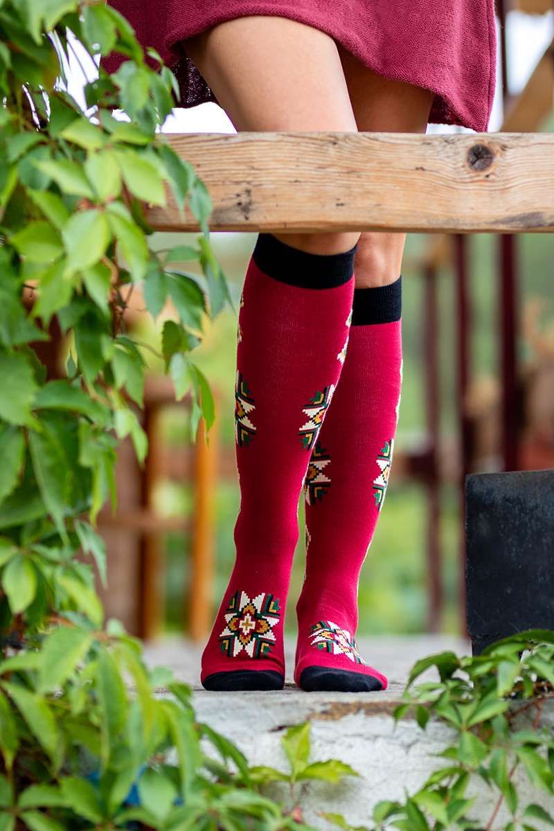 Șosete dama lungi 3/4 din bumbac cu motive traditionale românești Vișiniu